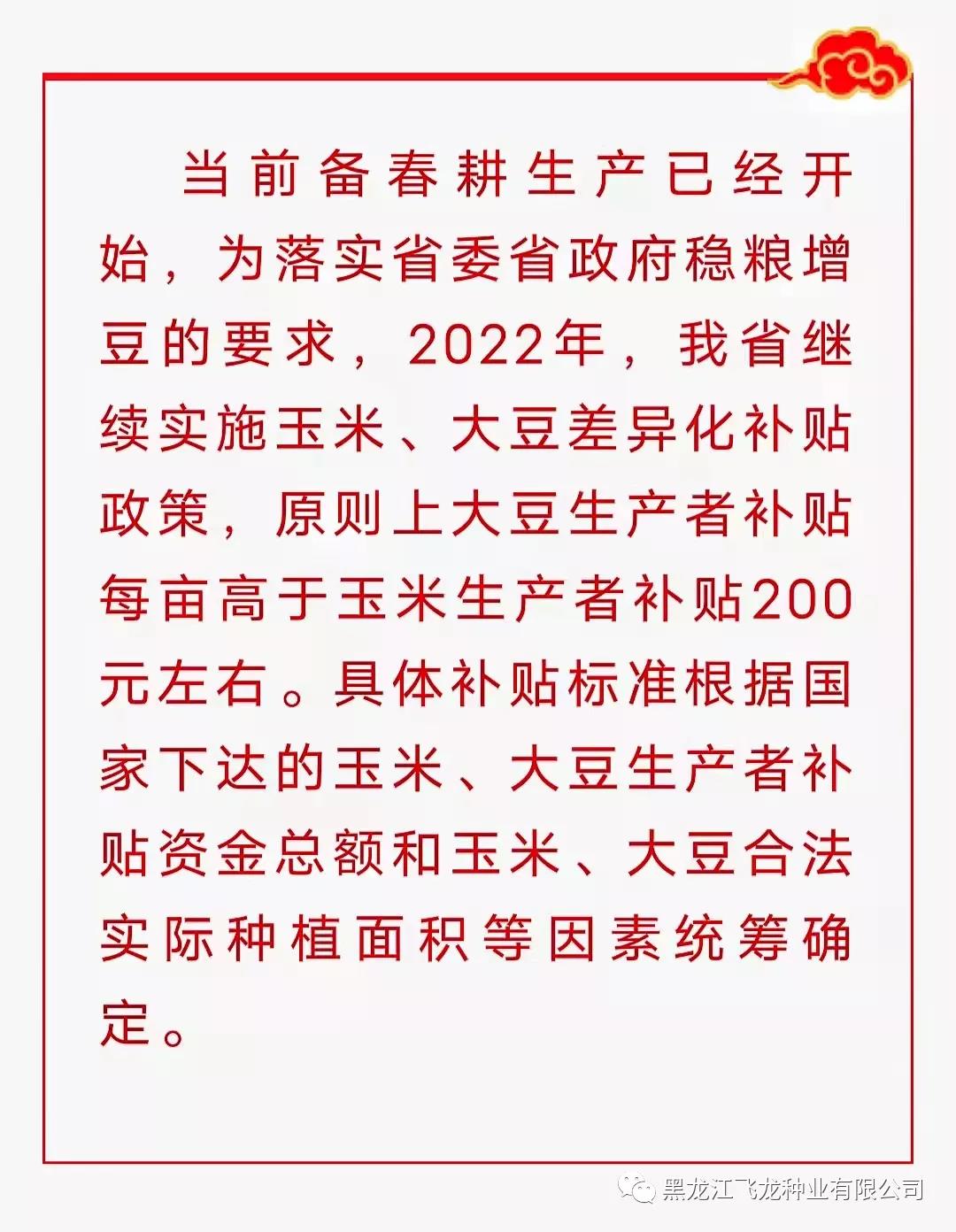 黑龍江省釋放2022年玉米和大豆生產(chǎn)者補貼政策信號